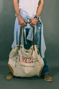 The 19227 SV Issued Tote + restored mail bag + Hand painted details w/ leather accents