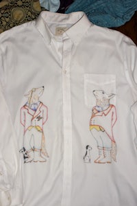 Sophisticated Fox long sleeve button up + water proof hand drawn design + added tagging